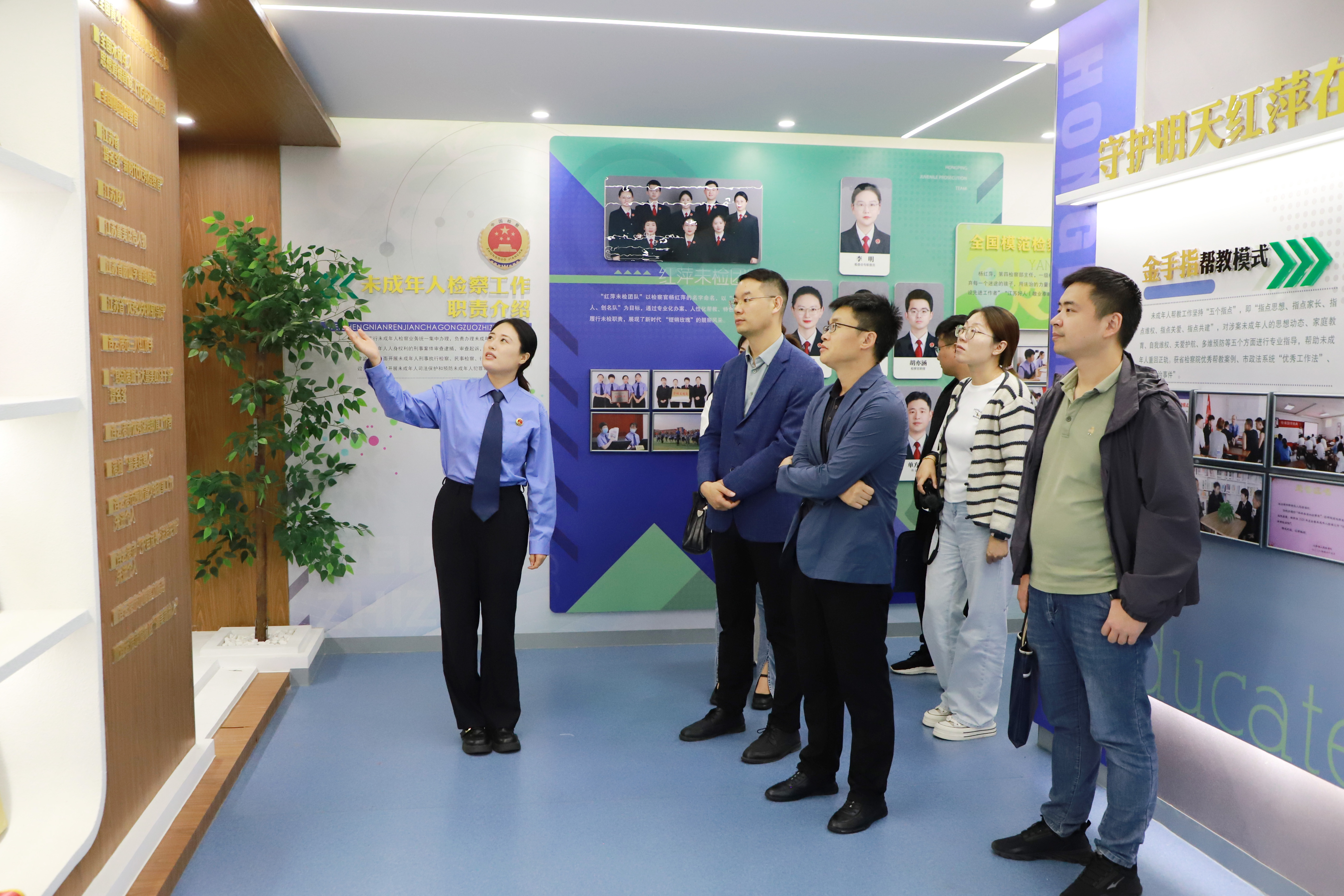 大丰区检察院一行实地参观了我院刑事和解室、“红榆伞”未成年人综合司法保护中心、红萍工作室、检察大数据中心等特色检察业务和文化阵地,详细了解相关工作的运行模式和成效。