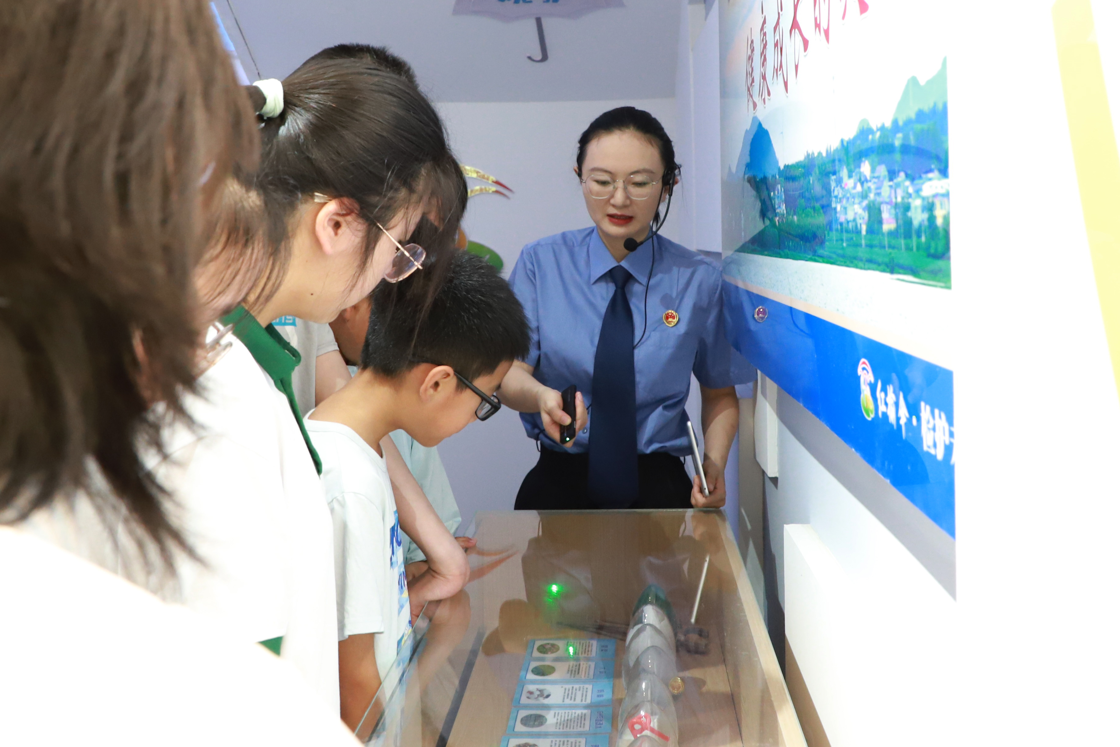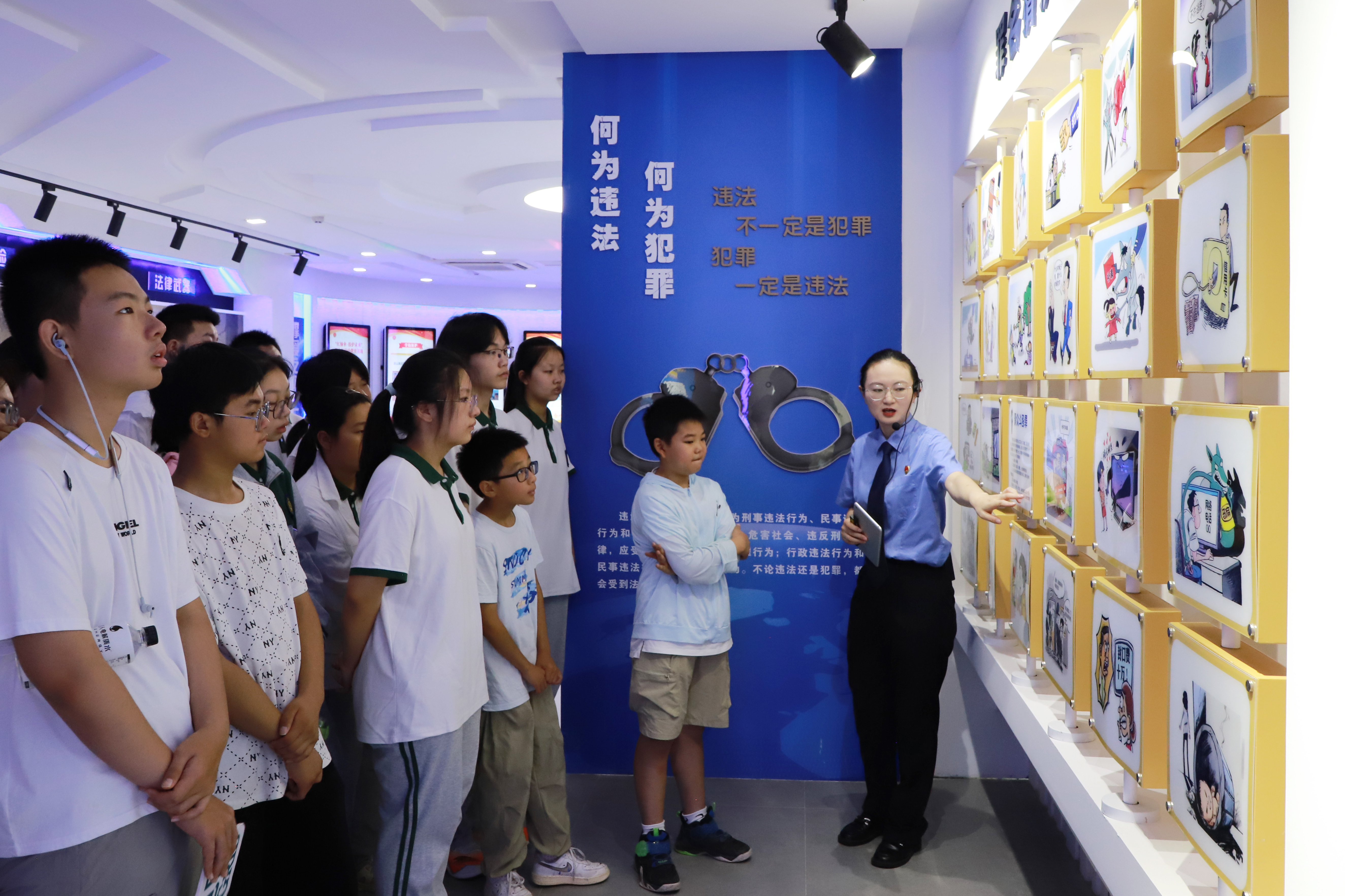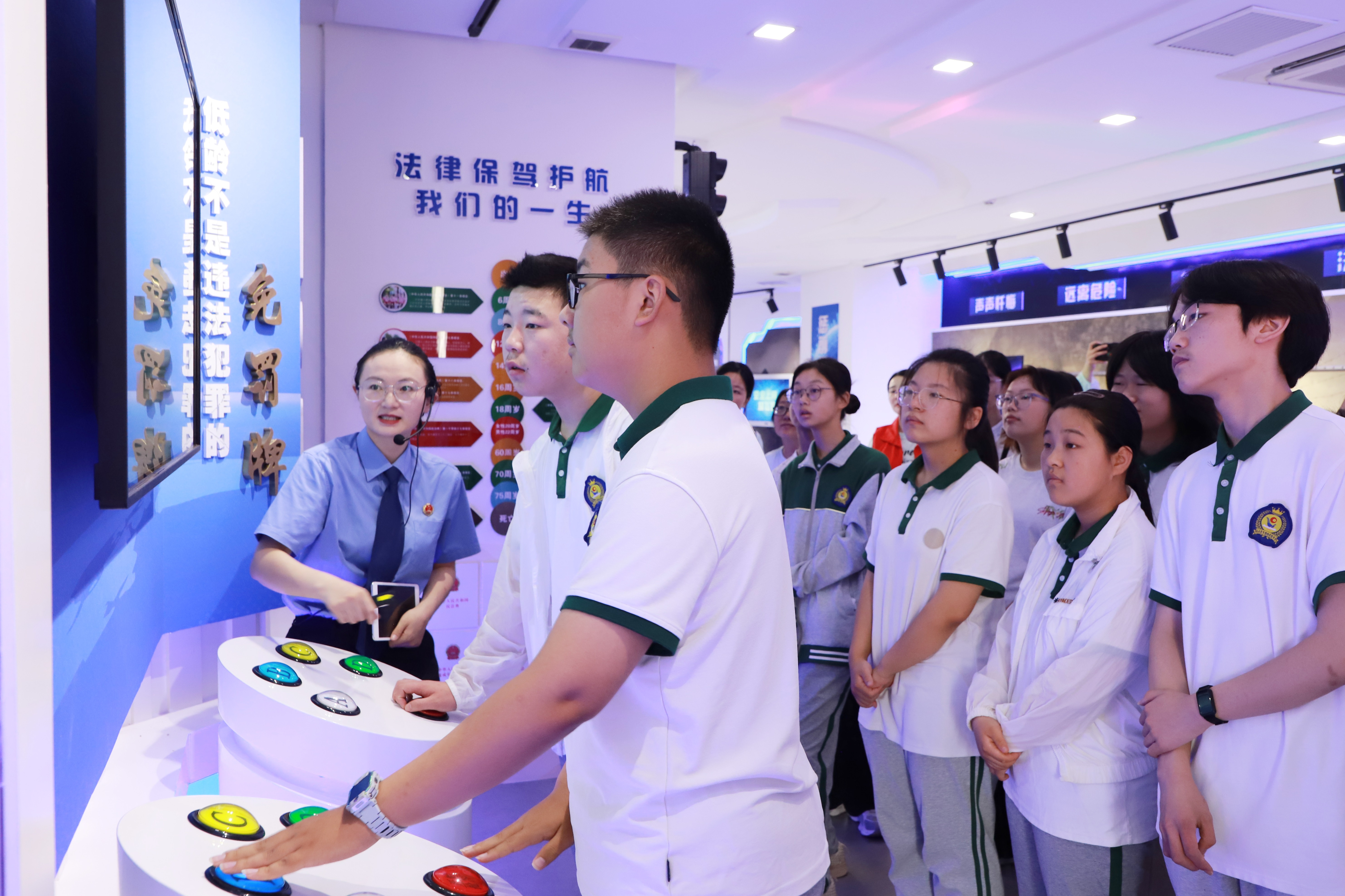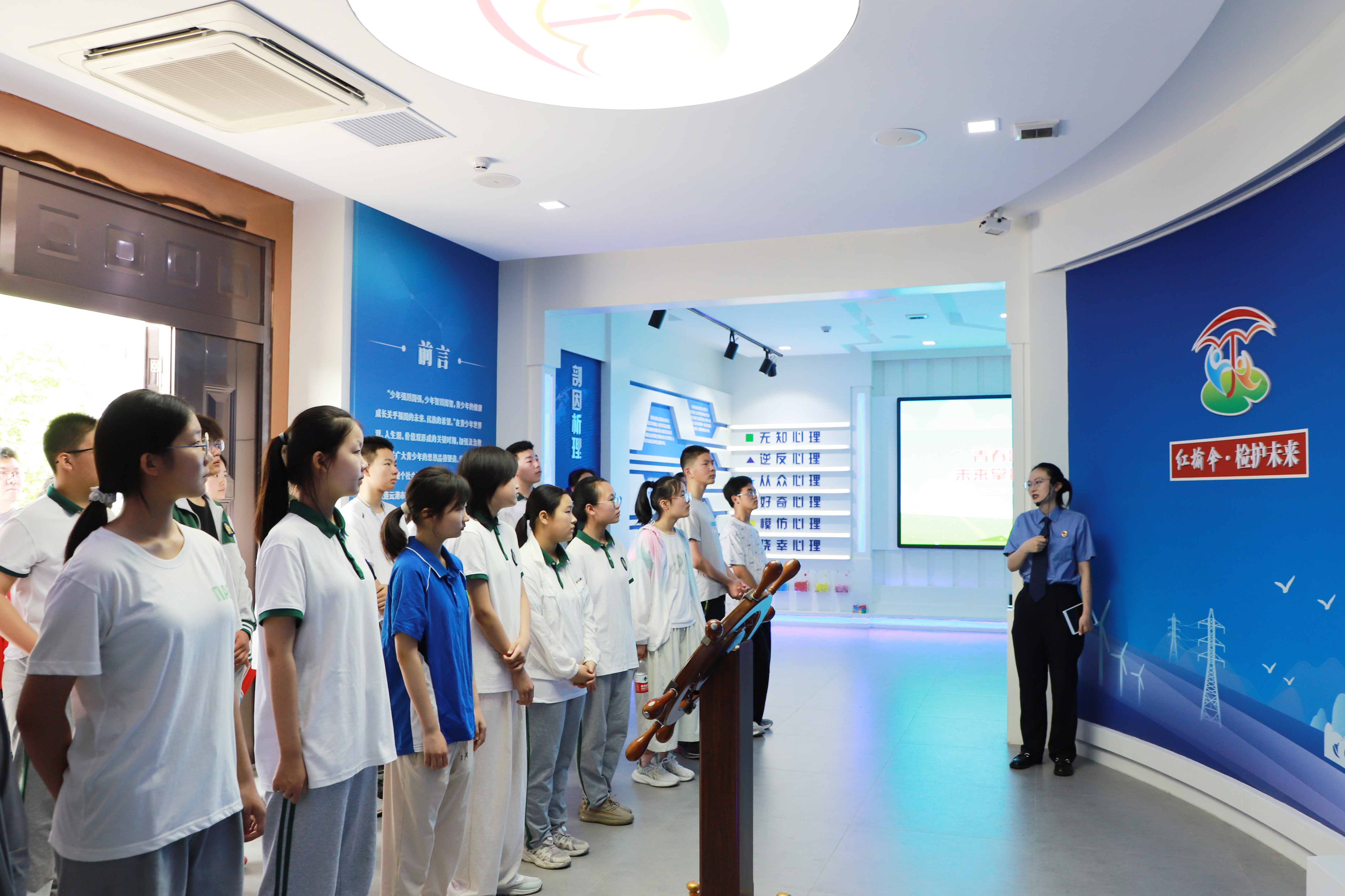 在检察干警的引导下,同学们首先参观了集救助、预防、教育等多功能于一体的“红榆伞”未保中心。中心内精心设计的场景与互动设施,使同学们直观了解了未成年人检察工作的职责与意义。干警们结合真实案例,重点围绕禁毒、预防暴力犯罪及涉“两卡”犯罪等内容进行了深入浅出的讲解。