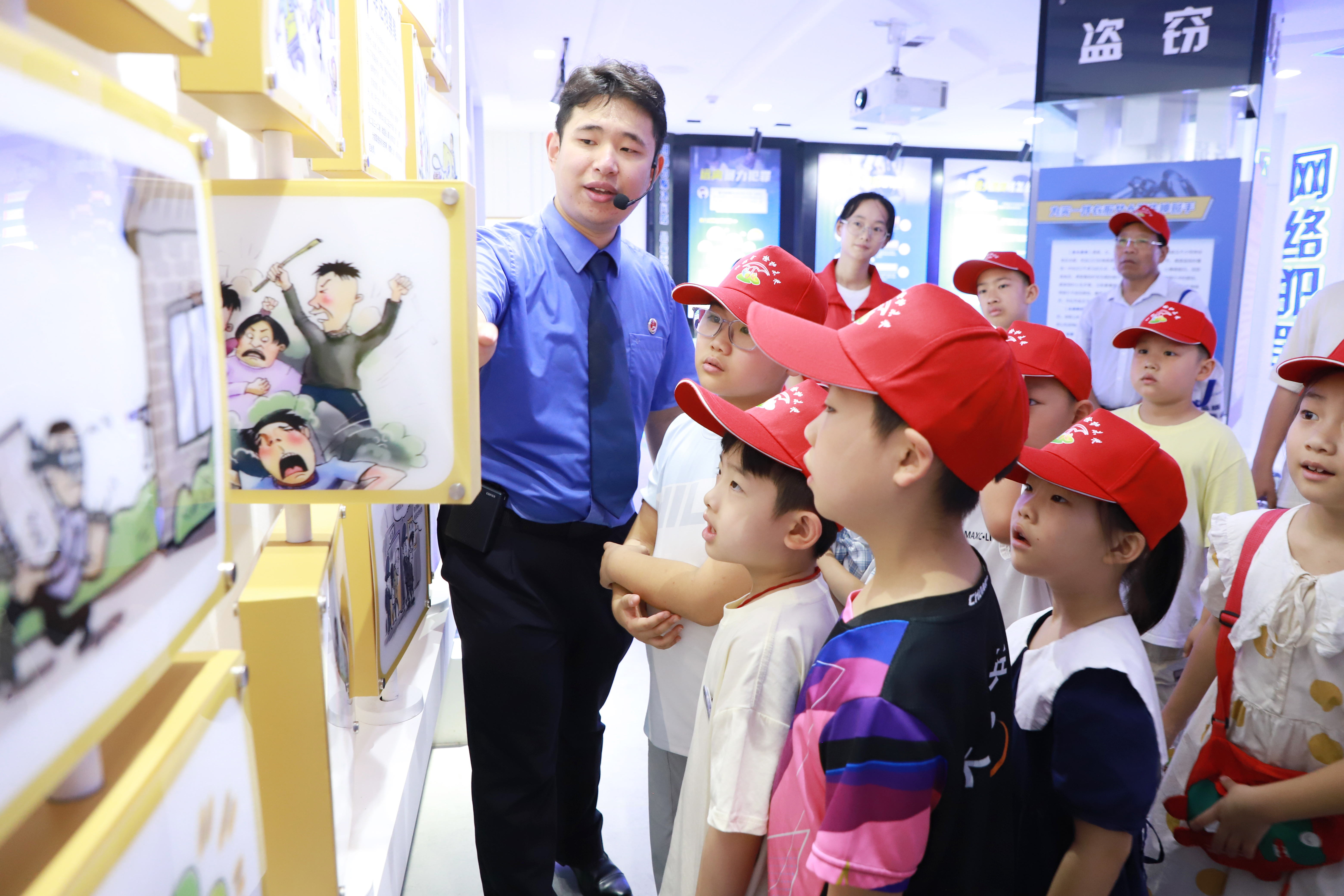 在检察干警与司法社工的带领下,夏令营的第一站来到“红榆伞”未成年人综合司法保护中心。“小朋友们猜猜,这幅漫画涉嫌什么罪名?”“很对!就是聚众斗殴罪!”在这里,孩子们通过翻动“翻翻乐”漫画墙,直观了解了48种常见犯罪;辅以普法动画、竞赛答题、互动体验等多种形式,让法律知识在轻松愉快的氛围中深入人心。