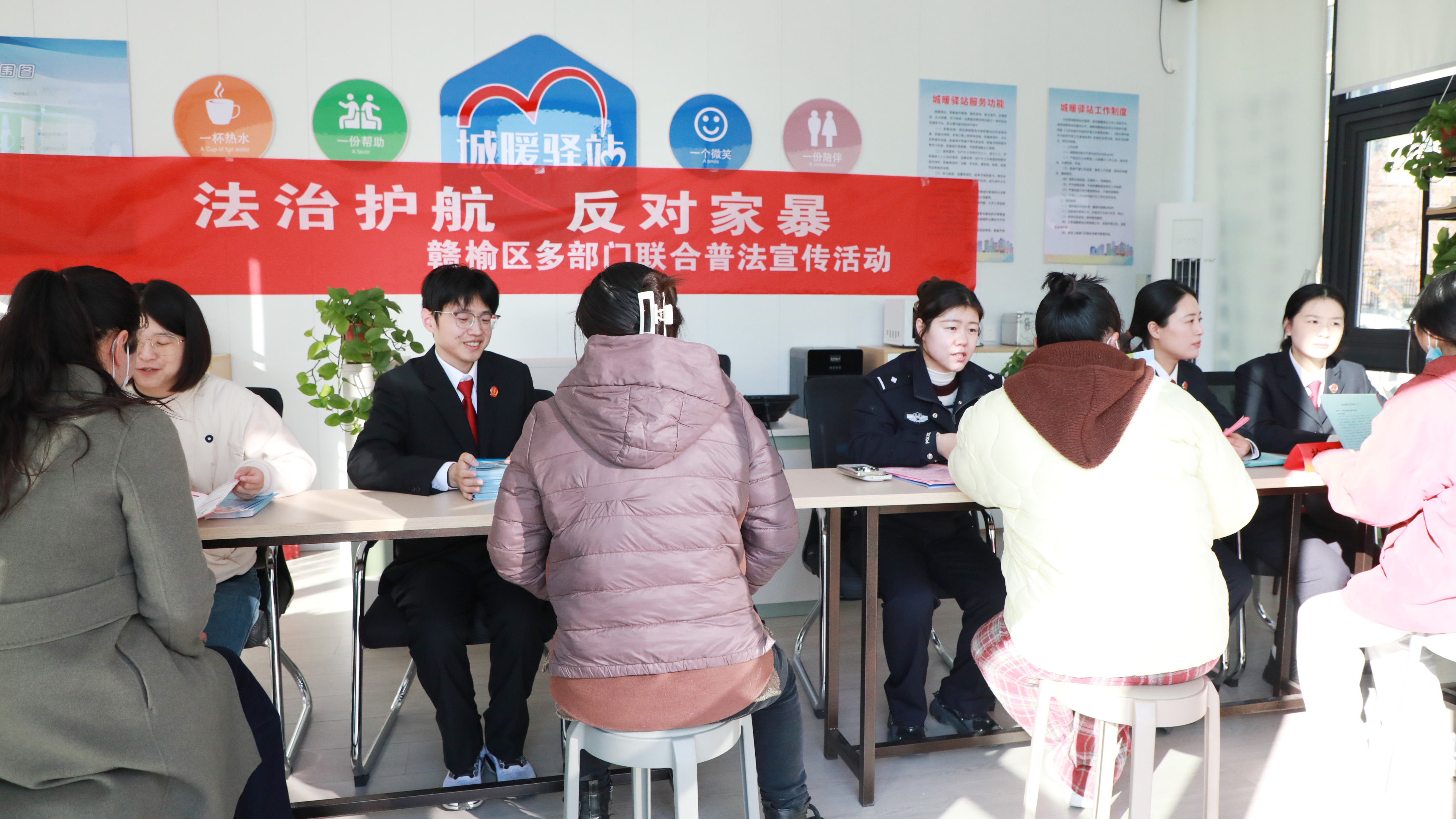 在11月25日“国际反家暴日”当天,为切实提高全社会反家庭暴力意识,有效预防和制止家庭暴力,保护家庭成员特别是未成年人、妇女的合法权益,由区妇联牵头区检察院、公安局、法院、司法局等部门,共同举办了一场以“法治护航,反对家暴”为主题的专项普法宣传活动,将法律知识与维权服务送到群众身边。