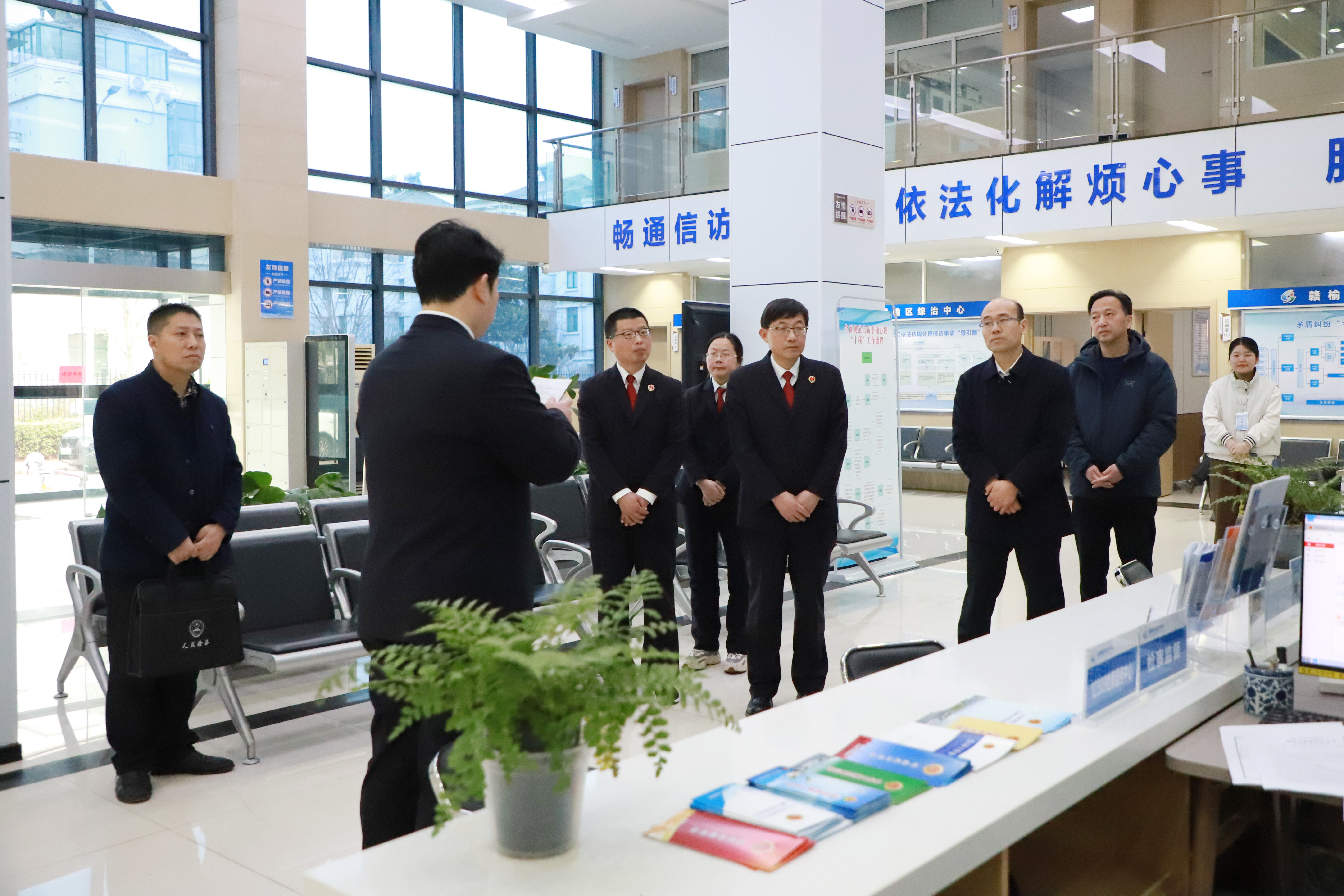 3月3日,江苏省检察院控告申诉检察部副主任江典键一行莅临赣榆区社会治安综合治理中心,专题调研赣榆区检察院参与综治中心规范化建设工作。连云港市检察院检委会专职委员陈长春,控告申诉检察部主任闫志强,赣榆区检察院党组书记、检察长刘培志陪同调研。