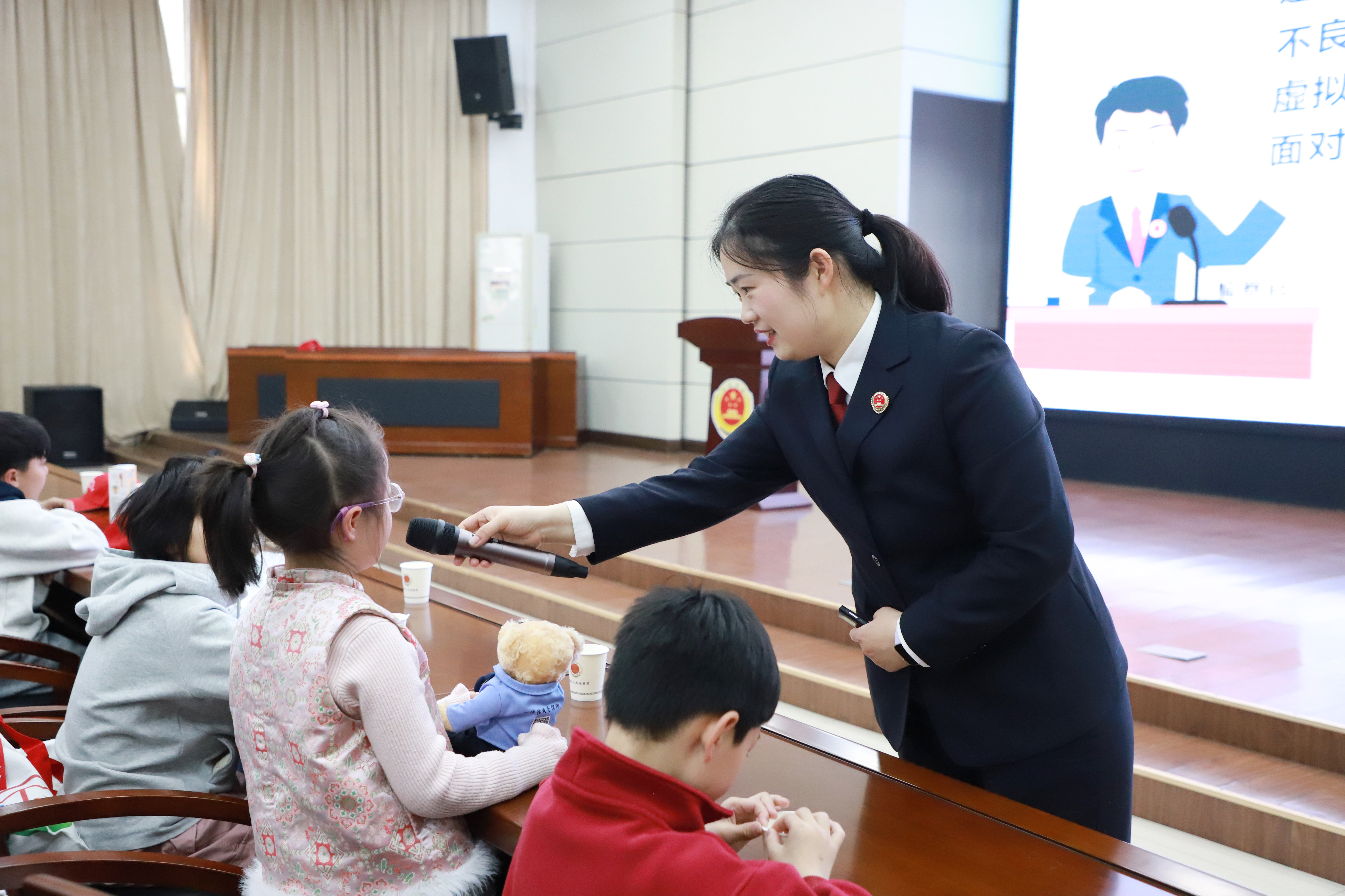 参观结束后,一场干货满满的法治课堂正式开讲。检察干警紧扣未成年学生日常生活中的常见法律问题,选取孩子们喜闻乐见的真实案例,详细讲解网络保护、交通安全、防范校园欺凌等与成长密切相关的法律知识,让法治理念潜移默化融入孩子们的日常生活。互动答题环节中,现场气氛热烈高涨,孩子们踊跃举手、积极抢答,眼神里满是求知的热情,在趣味问答中巩固法律知识,深化法治认知。